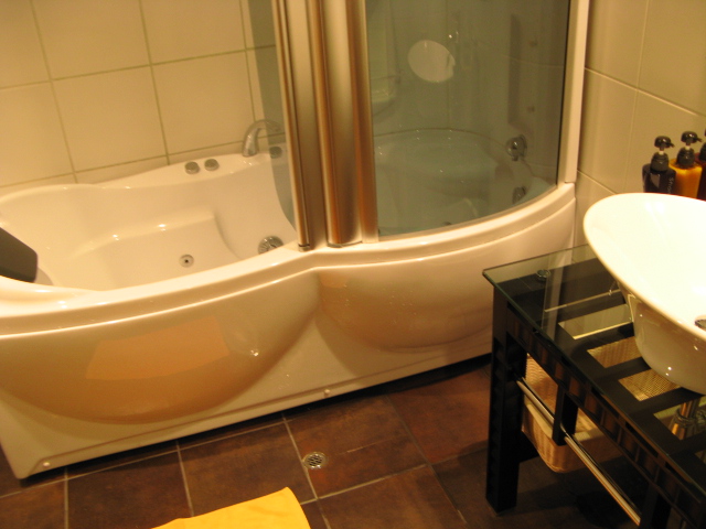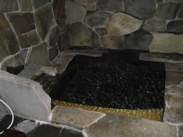 2日めからの部屋風呂は中庭越しの洞窟風呂(温泉)、、、、一人で入るのには何となく寂しい感じで、、、、