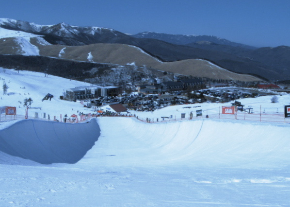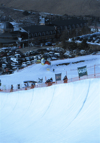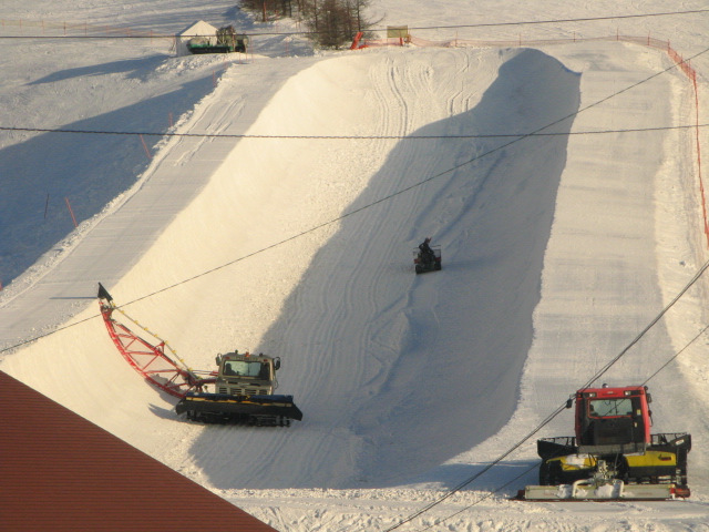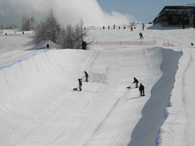 パイプの深さは6mバーチはほとんど無し、スーパーパイプに近い形で、多少レギュラーのフロントサイドのリップもボトムも高いのですが、、、、マコ慣れしている選手には踏切のタイミングと蹴り具合が違うので慣れるまで大変かな、、、、