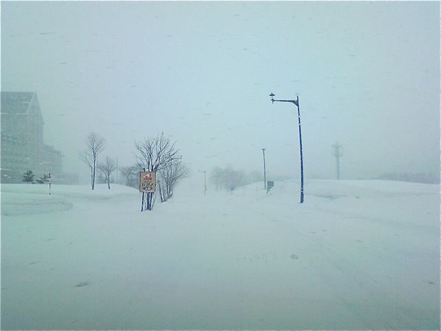 肝心のキロロdeバッジテストは、暴風雪のためリゾートがクローズで中止! もしかして明日は吹きだまりパウダーが当たるかな(笑々)