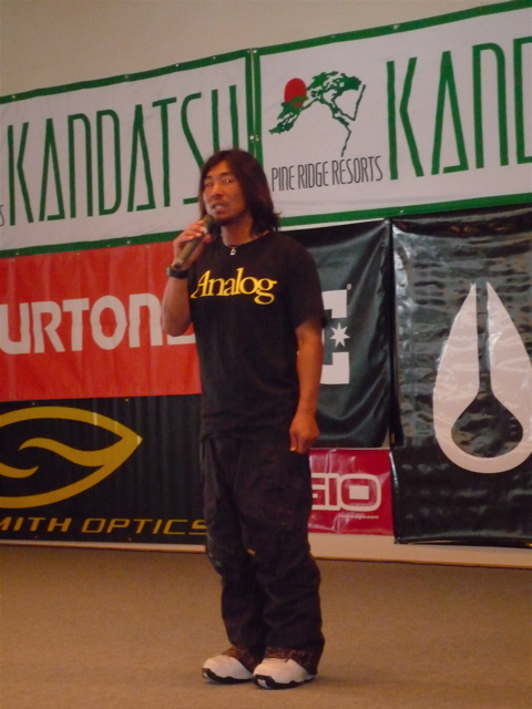 今年からPSA(日本のプロスノーボーダー組織)を引張って、プロ戦の開催とプロ選手の意識改革に力を入れ始めた、頼もしくなりそうな黒い顔の奴。