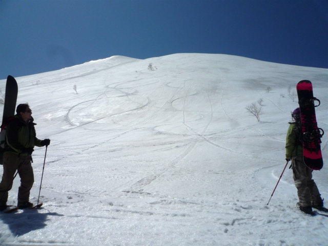 ゲレンデは、曇り→雨→曇り→晴れ、、、余市上部では降雪ありで(天気予報当たりでした)、シャバシャバでしたが、余市岳は美味しそうでした。