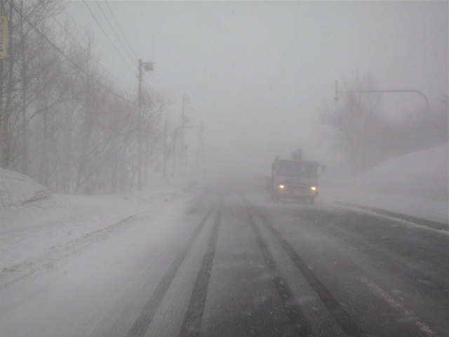 キロロを越えた毛無し峠では猛吹雪、、、木の枝も折れて沢山すっ飛んでました!