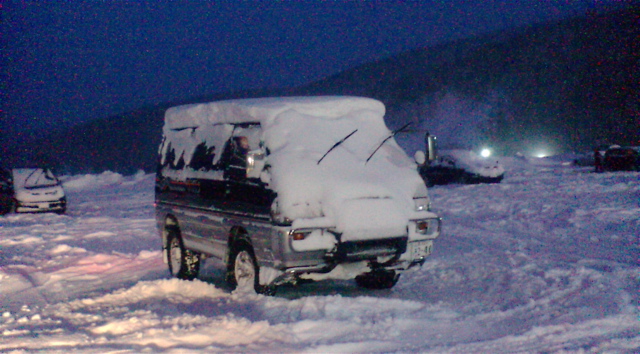 帰りには駐車場もタップリパウダーでした。