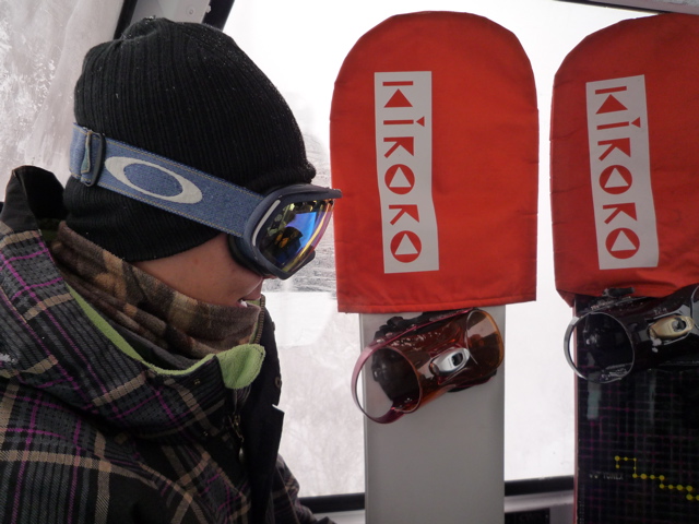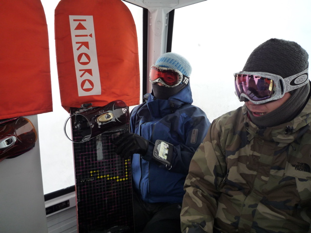 初滑りは、、、マナブ、ヒラタ、キム、タケシ、ダンチョウとゴンドラに乗っていつもの所へ、、、