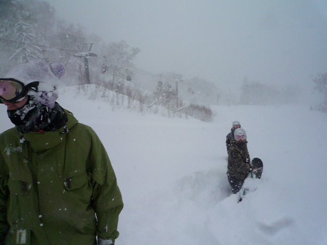 初転び、、、余市Aを直下ってた時にグダグダにやられて、前転2回転、、、A2A滑り出しにバックサイドでグサッ、、、レッスン中のフェイキーでテールがザクッ、、、ありえな〜い!不意打ち転倒、、、新しいブーツとバインのセッティングのせいにして自己暗示。
