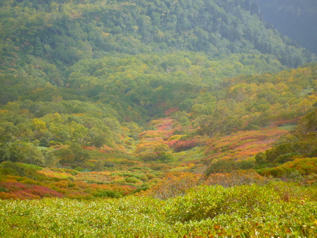 春に滑った斜面もすっかり紅葉バーンでした。