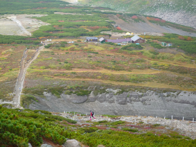 黒岳のロープウエイとリフトを使って7合目からスタートして、黒岳の裏側の北海岳を経由して、赤岳から銀泉台迄の縦走で、帰りは道北バスを利用する比較的楽なルートです。