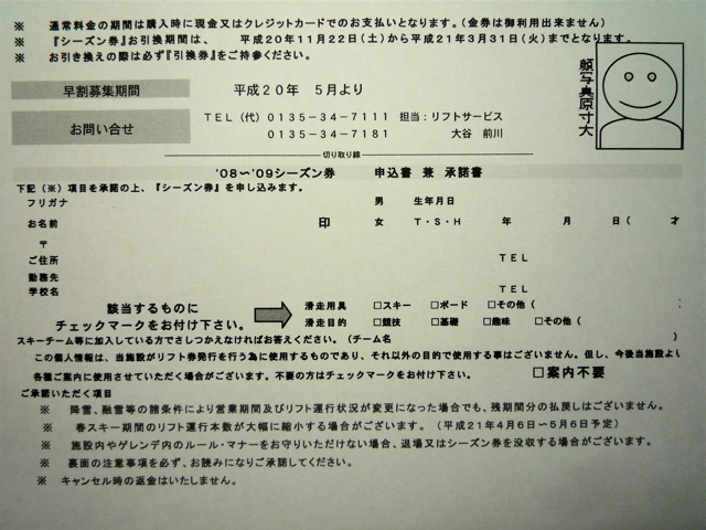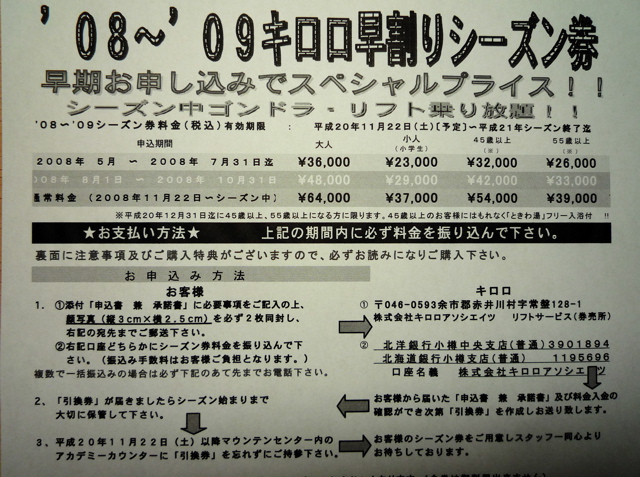 通常の一日券は4700円、、、割引券使用で3900円位だから、10回行けば元は取れちゃいますが、何と言っても、今払っちゃえば冬場にリフト代を気にしなくて良いという安心感が持てます。