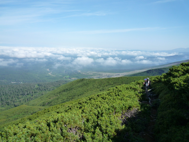 りょう線に出ると、雲海と涼しい風が疲れた心を癒してくれます。