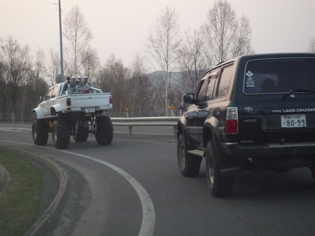 リフトアップしているシノのランクルが普通に見えます。