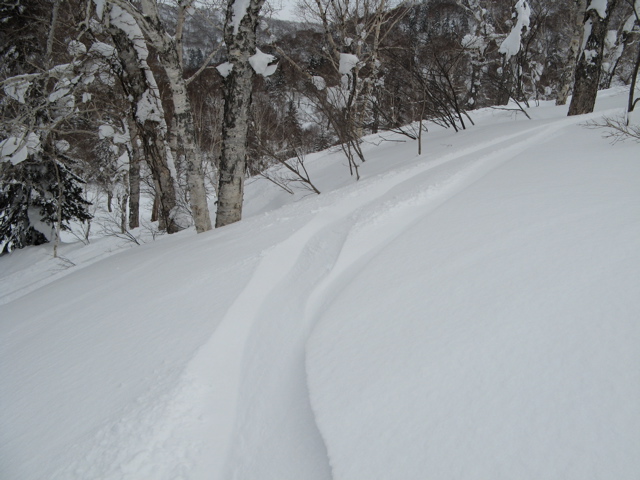 Team J&R(タケちゃんとダンチョウ)は、MSRゲットしたので、初のピアノ裏へ、、、重めパウダーだったけど面白かったみたいです。 早くビーコンも入手しよう!!