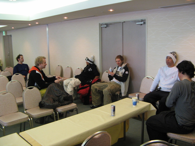 公式練習中止で、10時迄ウエイティング!、、、ジャッジもライダーも一時ミーティングルームへ、、、