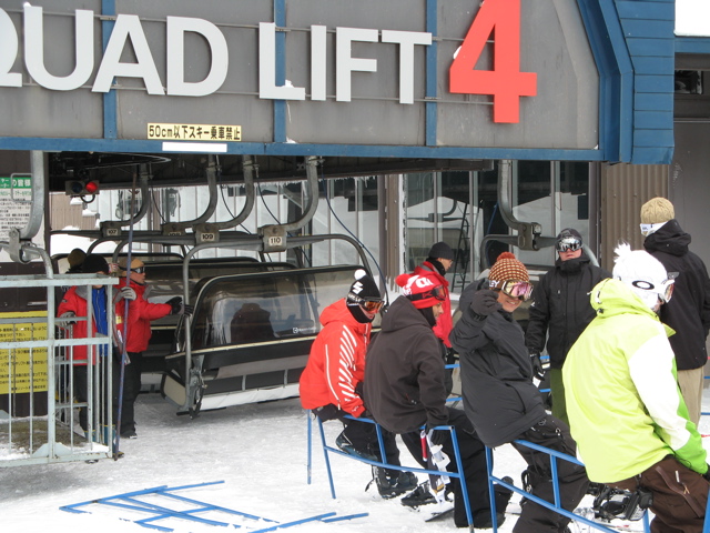で、さすがジェイソン!、、、すでにオープン待ちのクワッド前に列んでました。