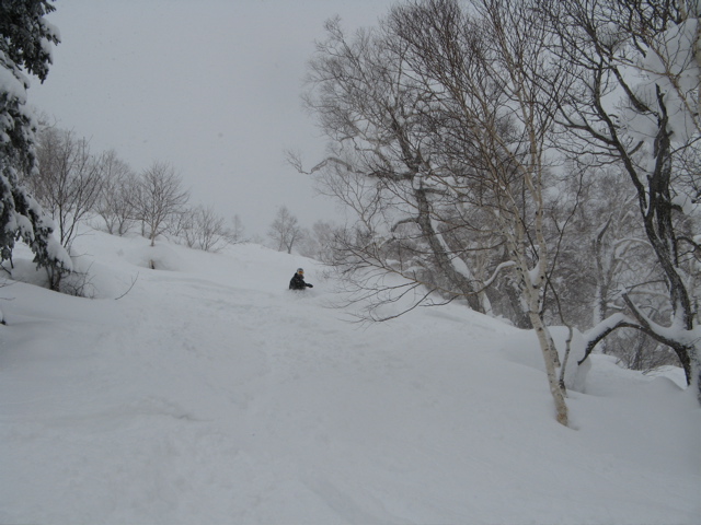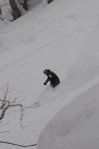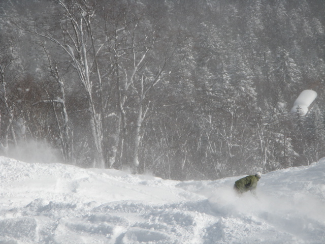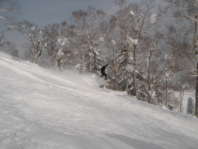 ダウンヒルでメシ食って、、、北の峰エリアへ、、、”熊落とし”は時間切れでクローズ、、、あいつらは入ろうとしていたが、『俺は入れないよ、、日本人だし、、、』、、、、しばらくやり取りして、『分かった、、俺らもやめる、、、』で、滑り始めたら、他のコース外へ消えてった!!! やっぱボーダーは鼻が利くなぁ〜、、、