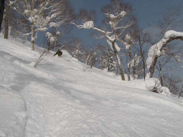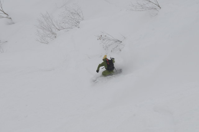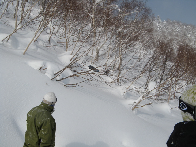 そんな中、昨日長峰裏へ入ったパーティが、13時頃に雪崩を誘発、4〜5人が巻き込まれノマドのガイドが立ち木に接触して骨折したみたいです。