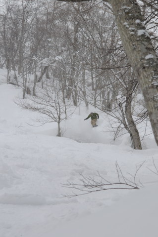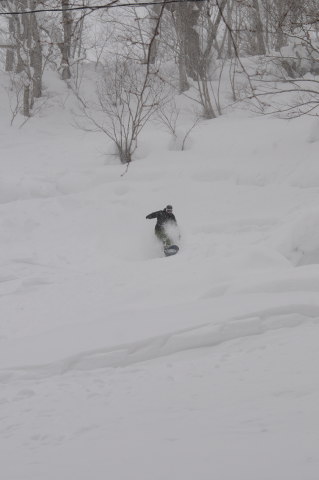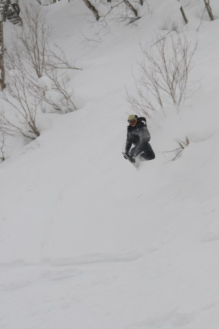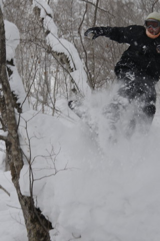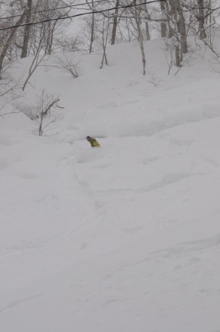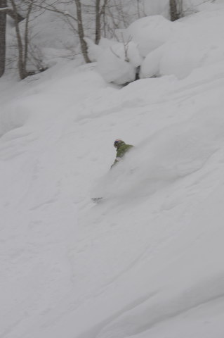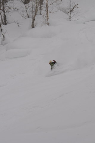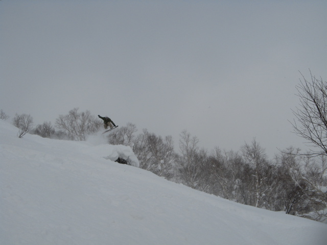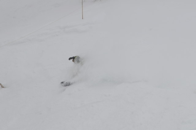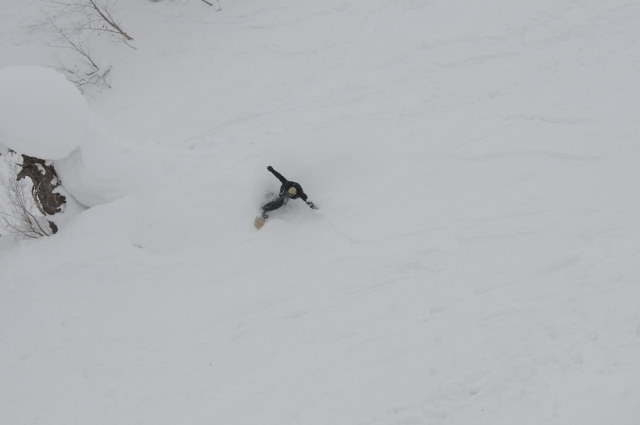 山頂ペアリフト廻りをグルグルして、右側の良いとこ入って、飛んで、、、ギド