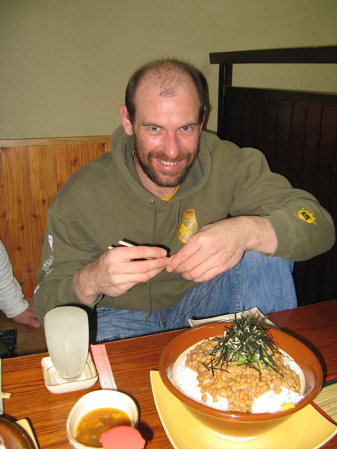 ギドが食べたいと言った”納豆丼”、、、これで一人前、、、追加の納豆もらって玉子かけても少し残りました。。。