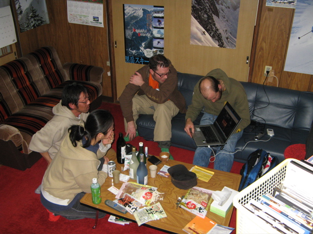 エトさんも合流して、皆で家族の話や、スノボの話や、ギドのやっているイベント”High Fly”の話とか、、、エトさんの話とか、、、インターネットも無線ランで使えるって便利な所です。