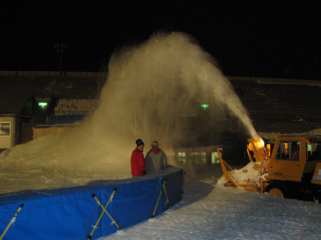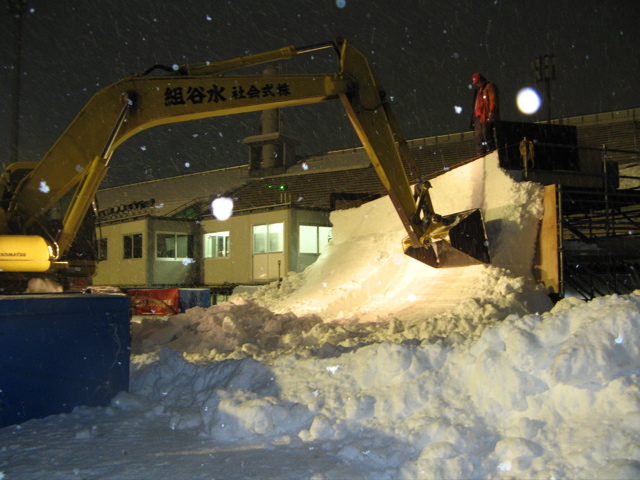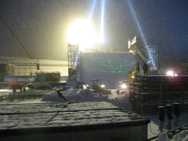 ブロアで雪付けして、バックホーで積み上げ、型押し、シェイプの順なんですが、少々遅れ気味な感じでしたが、、、特に雪がサラサラで、、、多分1晩寝かしてのシェイプになると思います。