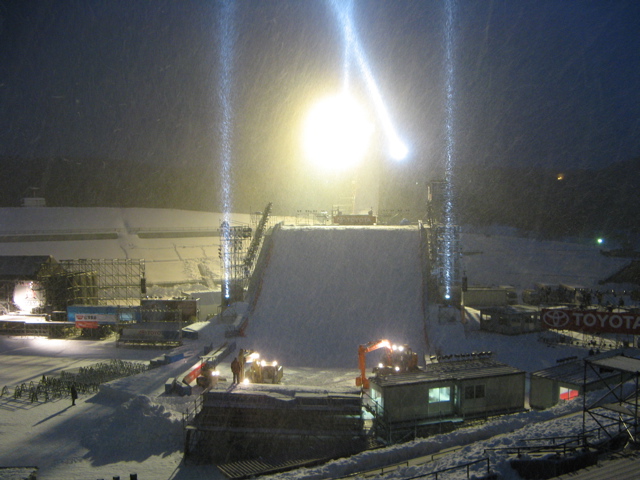 高さ38m アプローチ最大斜度42° キッカー26° テーブルトップ15m ランディング斜度33° 全長138m、、、