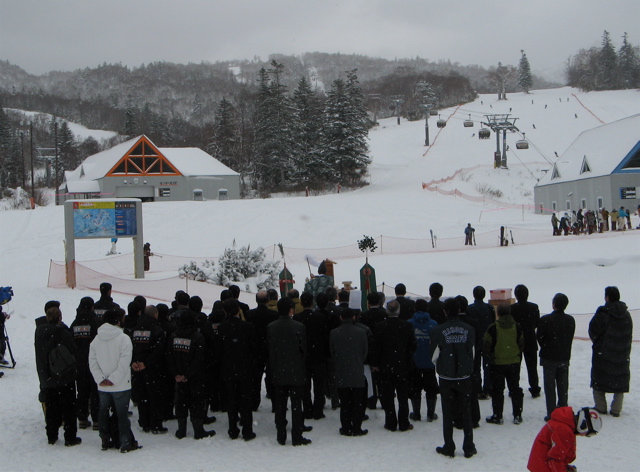 コース内の神木とホテル前では上級従業員が神主さんと祈祷式を熱心に行っていました。