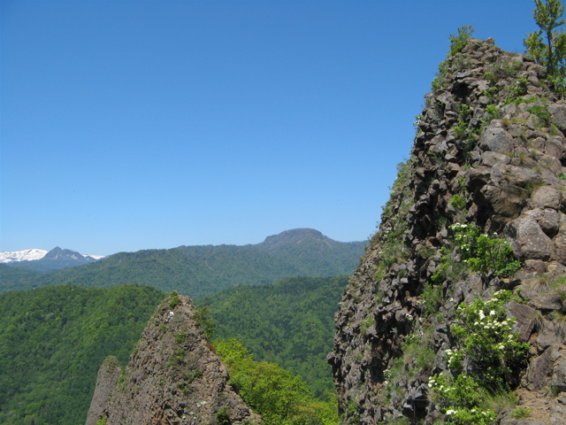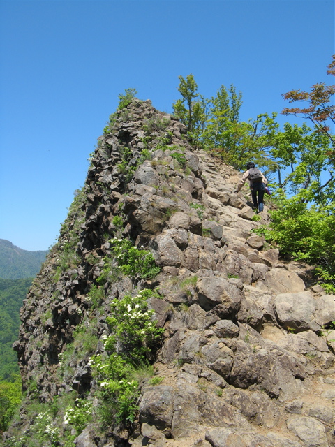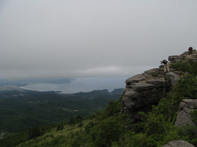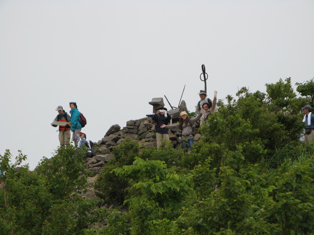 山頂付近は、比較的に広く、くつろげる岩場がいくつかあり、手前の岩場をクライミングしている人もいたり、マット広げてビールやツマミに至福を得ている人もいたりで、マッタリモードでした。