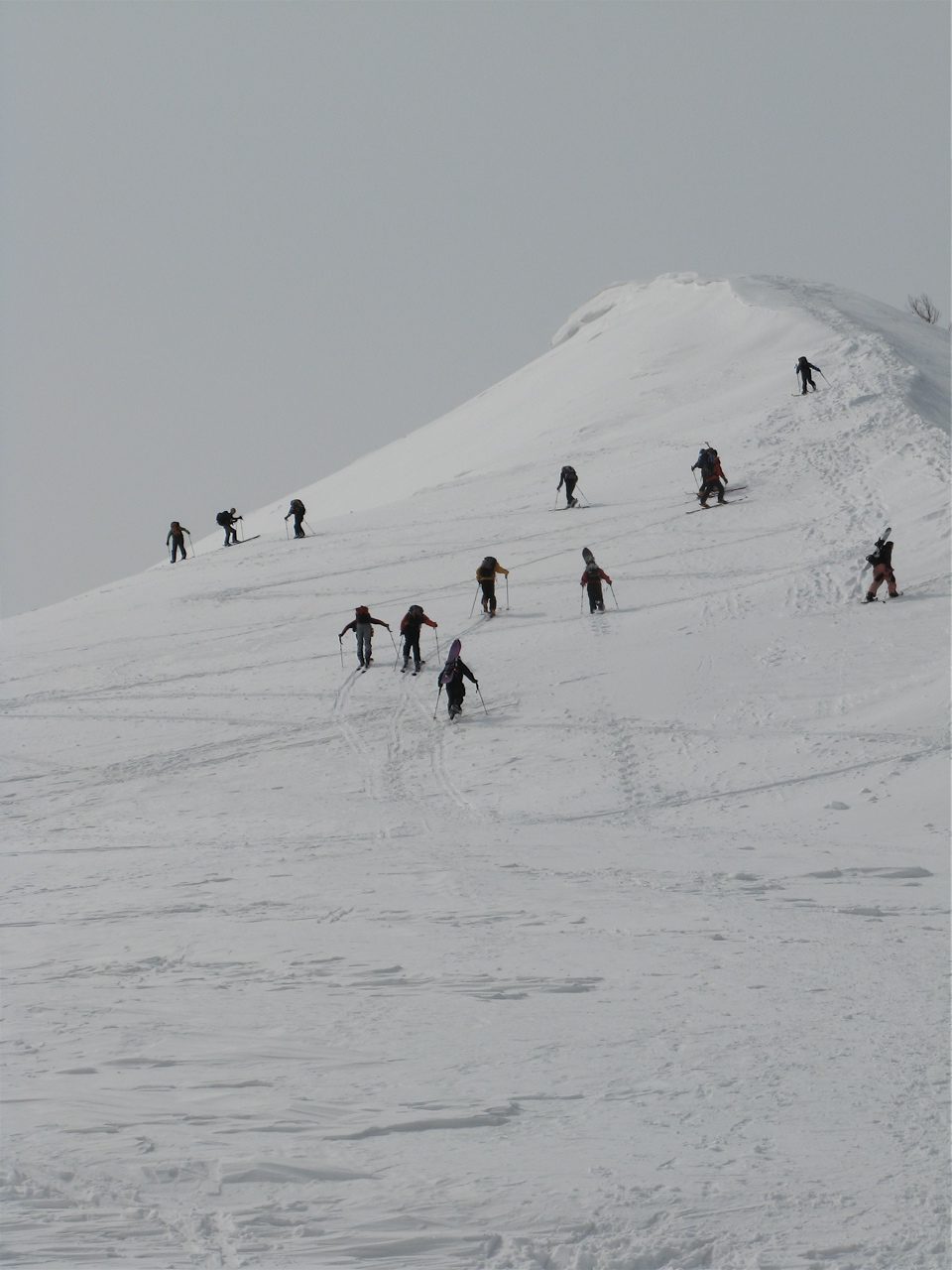 今日の余市岳は、登り始めたら曇が、、、程よい新雪が3cm程?あとは吹きだまり、、、まっ、いつもと同じ、、、でも雪は柔かったです。