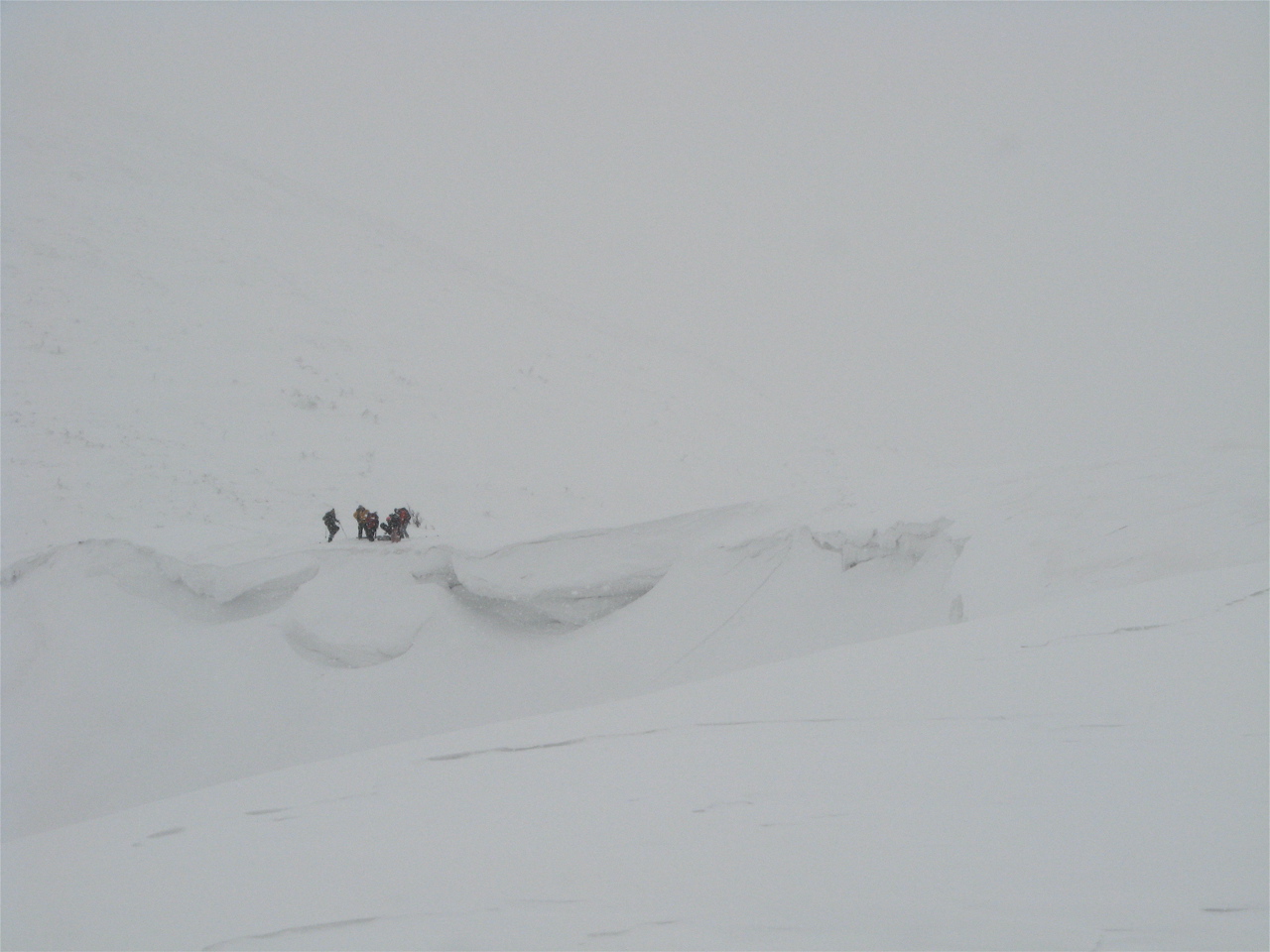 南東斜面手前側は先客が4名ドロップしていて、その奥はモービルが10台程アタックしていましたので、ダラダラ山頂へ行きました。