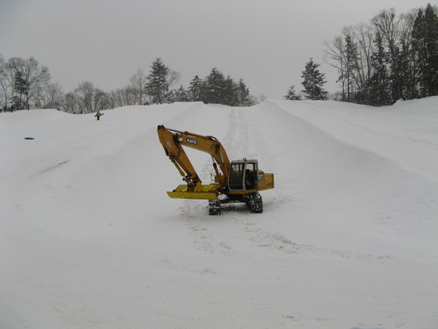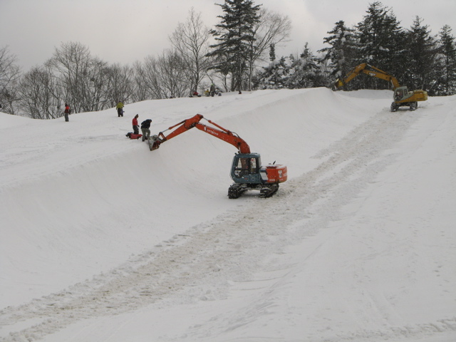 この人が凄い!! 職人ですね、、、ここのスキー場はデザイナーっていうHPシェイプマシンあるのですが、これを使うと10cm単位で雪が削れてしまう、、、ユンボだと、2cm位の削りも出来ると、、、夜中から、みんなの為に動いている達人です。