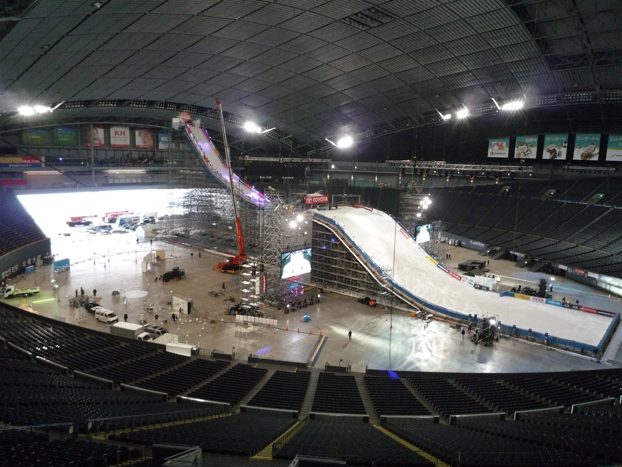 というのも、遠く離れたジャッジスタンドのモニターに映る映像が本番用ではないのと、ライトの位置がかぶり過ぎで見えませんでした。 ので、ライトの位置を明日までに変更してもらえる様にお願いしました。