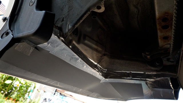 本当はバンパーに穴あけてピンで固定しようと思ったが、取りあえず両面テープ、ガラス繊維入りテープ、アルミテープを使って固定。。。これで毛無峠のパウダーランも気にせずに走れるかな(笑)