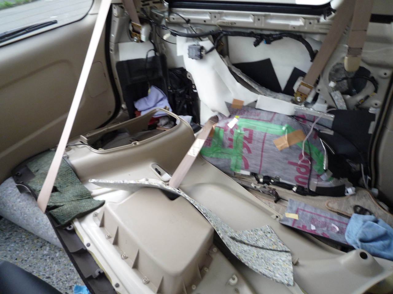 取りあえず、前回のエンジンルームの防音の効果、、、特に運転席との間の鉄板の効果が大で、かなり静かになった、、、気を良くして昨年にやった室内を総点検で吸音材の入れ替え(ペフを貼っていてトリムとの干渉でスレ音が出そうなところ)と遮音材の追加、、、プラスチックのピンの総入れ替え、、、普通に音楽聞いてる時には気にはならない小さなスレ音がミルミル消えて、、、(前車のエンジンと足回りが調子悪い時に無音で運転していたクセがすっかり身についてしまい、今の車もホトンド無音なので、ロードノイズ以外のカサカサ音が気になっていました)、、、満足満足。。。盆開けにフロントのドアをヤッツケルと消音対策は完成かな! この車はノーマルでも静かなんだけど、鳥取でアルファードに乗せてもらった時の静かさにはほど遠い、、、手を入れて同じかマサルか、、、恐るべしアルファード、、、ホシイ。