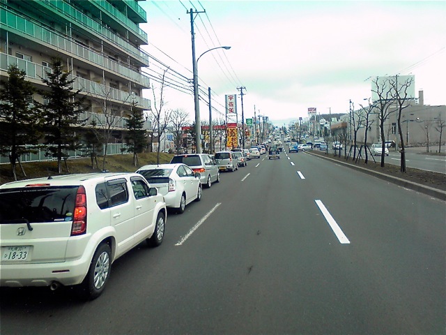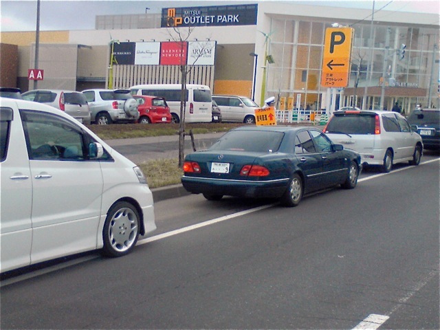 でも、以外と千歳側からのエントリー車はホトンド無く、通り向かえに用意されたアウトレット用駐車場にも空きスペースが、、、”駐車待ち最後尾”だけではね、、、”完璧な誘導ミス”と思われます。