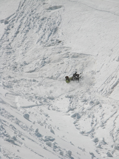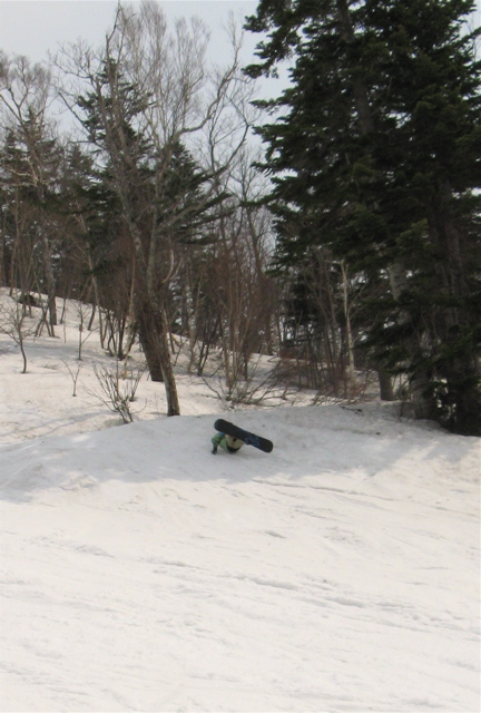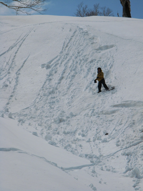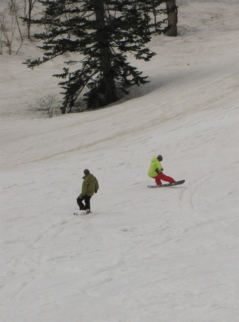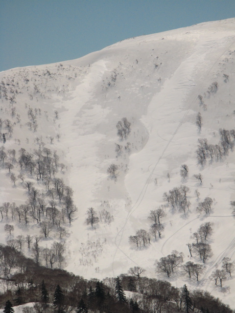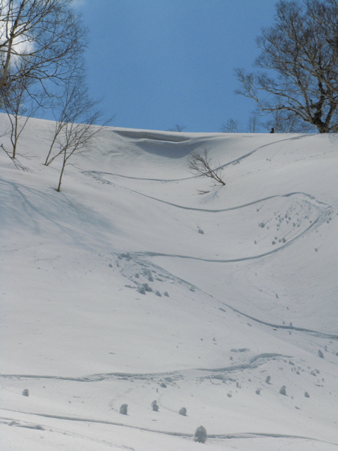 滑り始めと終わりに会ったのが、クミチャン、ノゾミ、サトミで、長峰裏へスキーヤー達と10人位で行っていたそうですが、やっぱり雪掴みが激しかったらしい、、、、、、