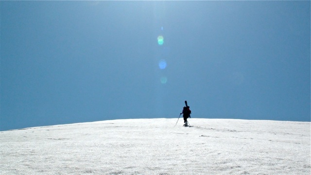 9時半頃に登りだし、マッタリペースで登りながら滑る斜面を選んで、前十勝の正面山頂に着いたのが13時半頃、、、富良野岳山頂からのライン見たり、裏旭岳や愛山渓裏の雪の多さに驚いたり、、、ランチしてドロップ。